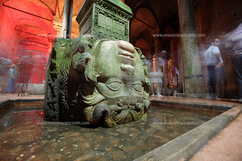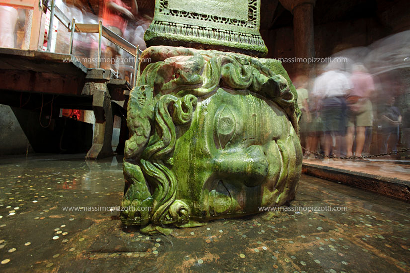 Medusa head column at Yerebatan Saray, Basilica cistern
