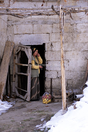 Woman by the house's door
